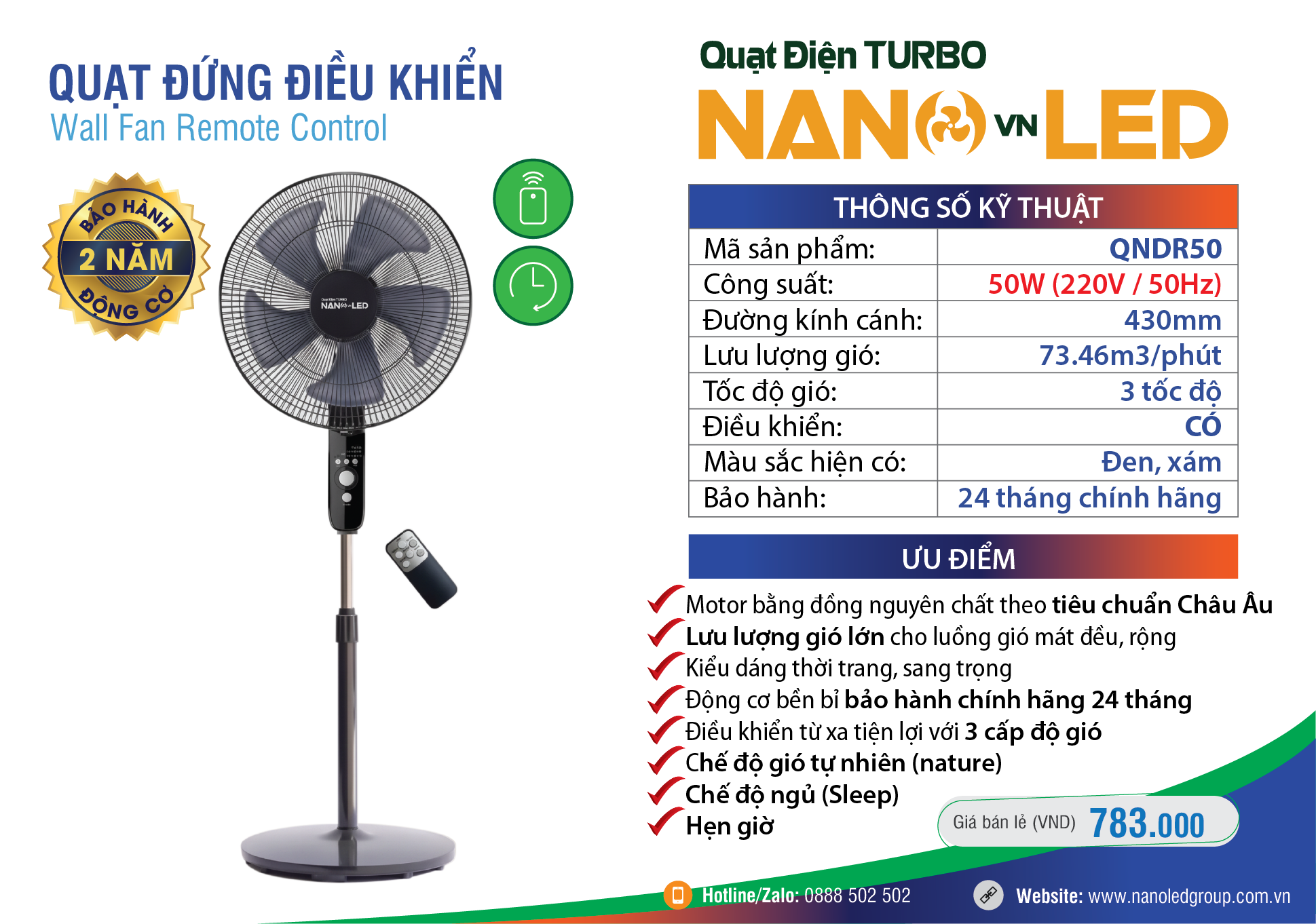 Quạt đứng điều khiển Nanoled 55W QNDR55, 430mm là sự kết hợp hoàn hảo giữa hiệu suất làm mát mạnh mẽ, thiết kế tiện lợi và giá cả hợp lý. Hãy sở hữu ngay một chiếc quạt Nanoled để tận hưởng không gian mát mẻ, thoải mái trong mùa hè này!