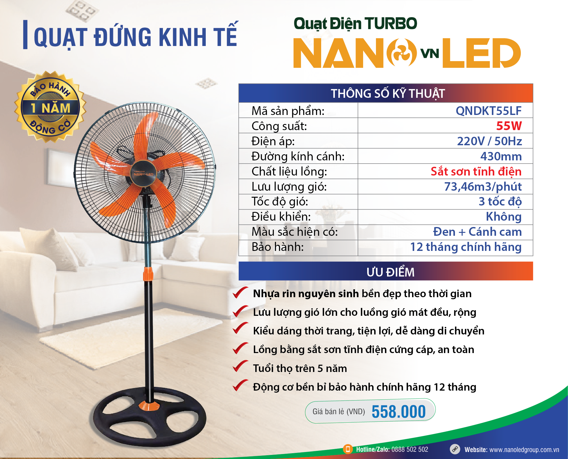 Quạt đứng Nanoled 55W QNDKT55LF, 430mm là sự kết hợp hoàn hảo giữa hiệu suất làm mát mạnh mẽ, thiết kế tiện lợi và giá cả hợp lý. Hãy sở hữu ngay một chiếc quạt Nanoled để tận hưởng không gian mát mẻ, thoải mái trong mùa hè này!