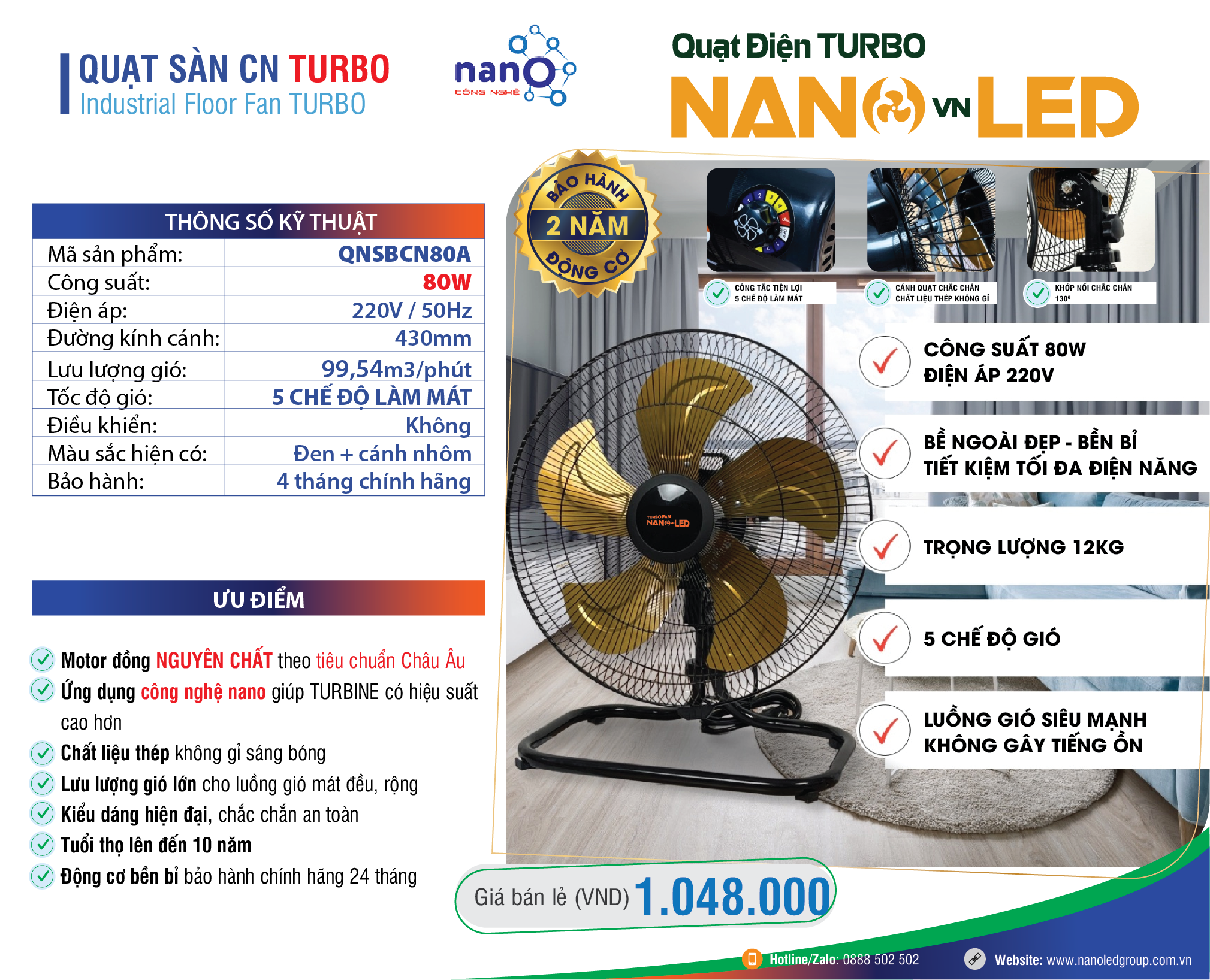 QUẠT SÀN BÁN CÔNG NGHIỆP QNSBCN80A TURBO NANOLED